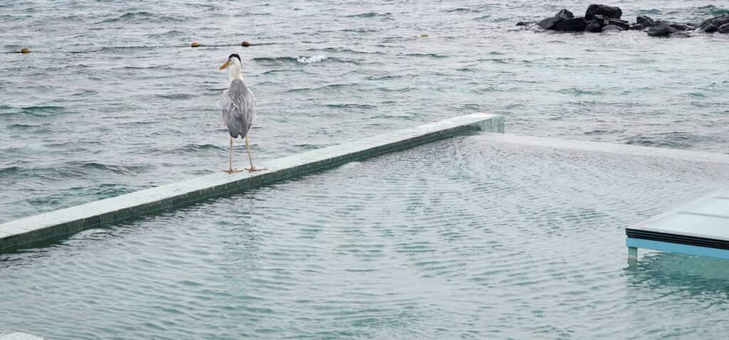ときおり鳥などが水上ヴィラに来ることがあり、鳥を見ることも水上ヴィラからの景色の醍醐味だったと思ってます。